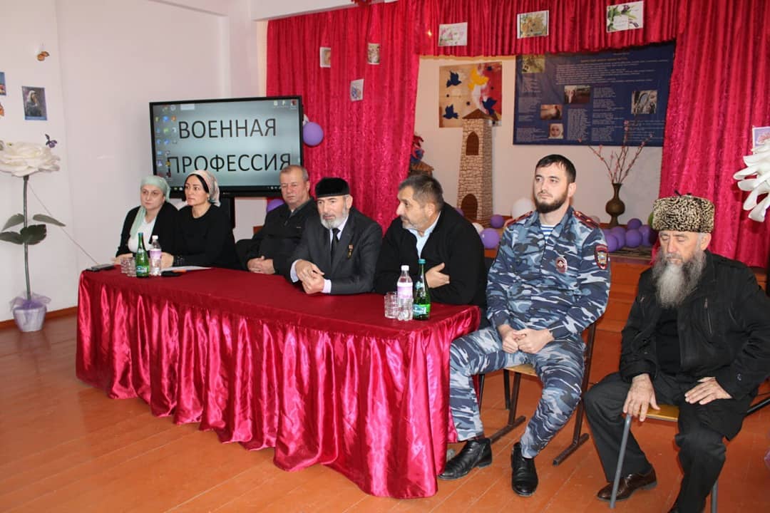 муниципального района Акаев М,С., в целях исполнения распоряжения Главы Чеченской Республики от 24 ноября 2019 года # 171рг "Об организации обучения граждан начальным знаниям в области обороны и их подготовки по основам военной службы в общеобразовательных организациях Чеченской Республики и учебных пунктах на 2019/20 учебный год" выехали в МБОУ "Рубежненская СОШ" для встречи с учащимися старших классов. В этом мероприятии также приняли участие представители местной власти.