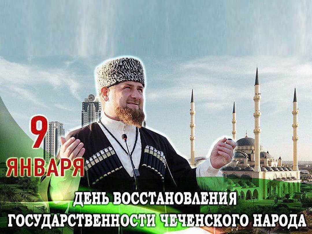 Верховного Совета РСФСР, предусматривающий снятие запрета на возвращение чеченцев и ингушей в места постоянного проживания, которые были депортированы 23 февраля 1944 года в Среднюю Азию. Это событие дало возможность жертвам репрессий вернуться на свою Родину. Депортация – одна из самых трагических страниц в истории чеченского народа, которая привела к гибели от холода, голода и болезней десятки тысяч лучших сыновей и дочерей нашего народа. Указ об объявлении 9 января Днем восстановления государственности подписал ГЛАВА ЧЕЧЕНСКОЙ РЕСПУБЛИКИ, ГЕРОЙ РОССИИ РАМЗАН АХМАТОВИЧ КАДЫРОВ в 2010 году.Сегодня Чеченская Республика имеет свою реальную государственность в составе Российской Федерации. Её гарантом служат принятая по инициативе ПЕРВОГО ПРЕЗИДЕНТА ЧЕЧЕНСКОЙ РЕСПУБЛИКИ, ГЕРОЯ РОССИИ АХМАТ-ХАДЖИ АБДУЛХАМИДОВИЧА КАДЫРОВА (ДАЛА ГIАЗОТ КЪОБАЛДОЙЛА ЦУЬНАН!) на всенародном референдуме Конституция ЧР и твёрдая поддержка Федерального центра во главе с ПРЕЗИДЕНТОМ РОССИЙСКОЙ ФЕДЕРАЦИИ ВЛАДИМИРОМ ПУТИНЫМ.Чеченская Республика на сегодняшний день стала одним из динамично развивающихся регионов России. Новый современный облик обрели города и села республики, появились новые школы, детские сады и заводы, поднялся уровень благосостояния людей, жители республики твердо уверены в своем завтрашнем дне.Уважаемый РАМЗАН АХМАТОВИЧ, от имени педагогической общественности поздравляю Вас с Днем восстановления государственности чеченского народа! Также поздравляю всех жителей республики с этим светлым праздником! Желаю всем мира, стабильности и процветания!