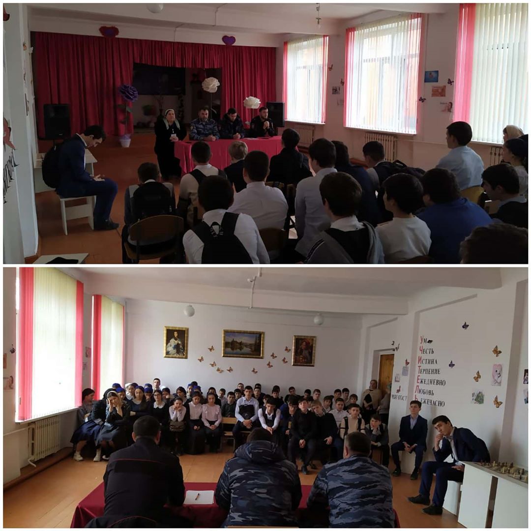 18.01.2020Участковый уполномоченный Нунаев А.Х., инспектор ПДН Эжаев У.В. и инспектор ПДН Хасбулатов М.Ж. провели профилактическую беседу с учащимися 8-11 классов.Тема: "Пресечение незаконной реализации несовершеннолетним табачных изделий и энергетических напитков".