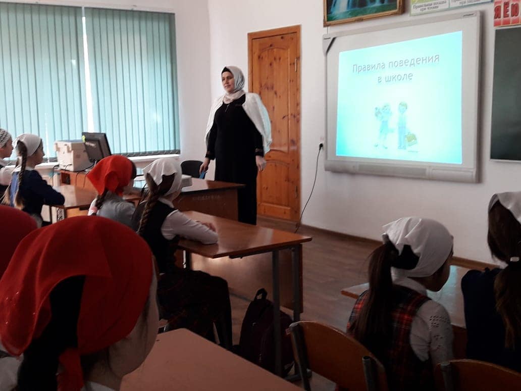 Социальный педагог Меликова Э.З. провела беседу с учащимися 4 кл.Тема: "Правила поведения в школе".