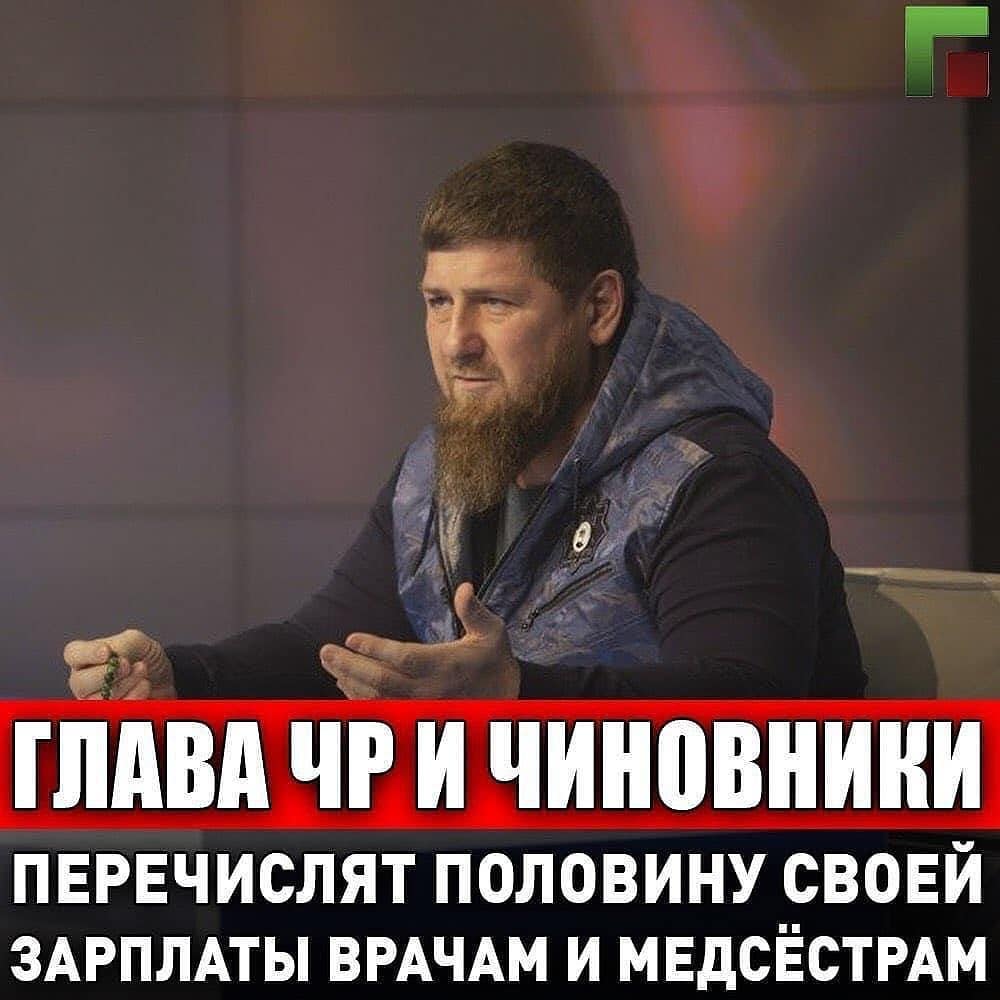человеческих жизней. В этот непростой период медицинские работники нашей республики ответственно и самоотверженно выполняют свой профессиональный долг. В знак бесконечной признательности вашему нелегкому труду, члены Команды ПЕРВОГО ПРЕЗИДЕНТА ЧЕЧЕНСКОЙ РЕСПУБЛИКИ, ГЕРОЯ РОССИИ АХМАТ-ХАДЖИ КАДЫРОВА (Дала гIазот къобал дойла цуьнан!) выступили с инициативой перечислить половину месячной заработной платы в помощь врачам и медицинскому персоналу, которые работают с больными коронавирусной инфекцией. Глава Чеченской Республики, Герой России Рамзан Ахматович Кадыров @za_kadyrova_95eng с одобрением принял идею оказать помощь тем, кому она сейчас необходима больше всех. Выражаю искреннюю благодарность Рамзану Ахматовичу, который предпринял своевременные и грамотные меры по предотвращению распространения COVID-19. Не сомневаюсь, что соблюдение всех мер карантина, рекомендуемых руководством республики, докажут свою эффективность и в скором времени мы победим короновирусную инфекцию!АллахI Дала Iалаш дойла вай!