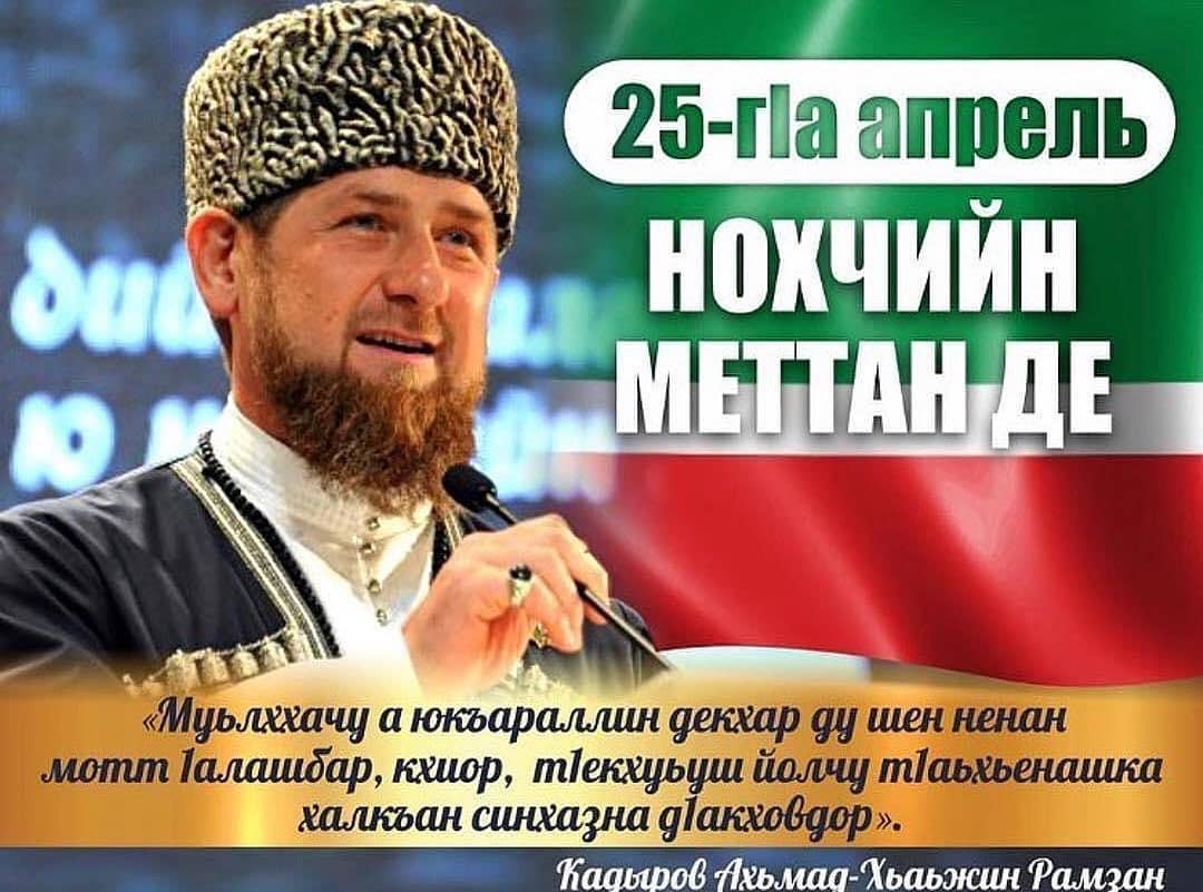дешаран а, Iилманан а министерствон белхалойн цIарах а, сайн цIарах а, аса даггара декъалдо шу Нохчийн меттан денца!Вайна ма-хаъара хIора а шарахь, оханан беттан 25-чу дийнахь, даздеш ду Нохчийн меттан Де. И даздаран а, цуьнан сий дар а коьрта ӏалашо ю вайн тӏекхуьучу кегийрхойн ненан матте болу безам кхиор а, царна маттаца доьзна долу гIиллакхаш довзийтар а.Нохчийн меттан Де билгалдаьккхина шен омраца 2007-чу шарахь Нохчийн Республикин Куьйгалхочо, Россин Турпалхочо Кадыров Ахьмад-Хьаьжин Рамзана @za_kadyrova_95engИштта лаккхара терго яра бахьана долуш, вайн махкахь мотт кхиорехь хIора дийнахь боккха болх бу дIахьош. Тахана вайн школашкахь, берийн бошмашкахь къаьсттина тидаме лаьцна ду ненан маттаца долу берийн гергарло чIагIдар.Нохчийн Республикин Дуьхьарлерчу Паччахьо, Россин Турпалхочо Кадыров Ахьмад-Хьаьжас (ДАЛА гIазот къобал дойла цуьнан!), меттан хьокъехь аьлла дешнаш: «Мотт ца хилча - къам дац!». Оцу дешнаша вайн Даймехкан машаре новкъахь сийлахь меттиг дIа а лаьцна, ненан маттаца бен къоман тIаьхье ца хилар хаийтира.Иштта тахана дIахьош бу вайн мехкан говзанчаша, Iилманчаша, яздархоша хьехархоша мотт кхиорехь жигара болх. Вайн декхар ду тIекхуьуш болчу кегирхошна ненан маттаца доьзна долу оьзда гIиллакхаш довзуьйтуш, мотт безар а, ларар а, Iалашбар а гойтуш, церан уьйьр чIагIъеш къахьегар.Дала декъала дойла вай хIокху дезачу денца!Дала тIаьхье беркате йойла!