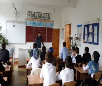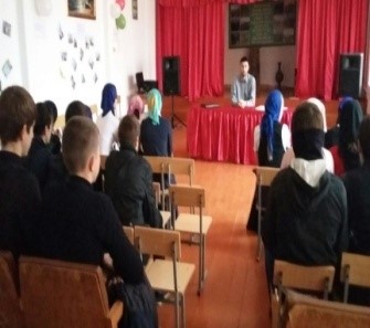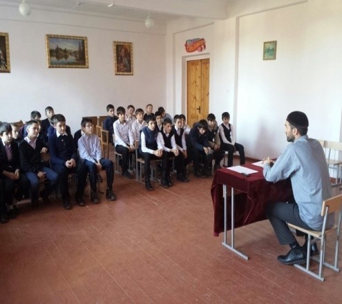 Педагог-организатор по ДНВ Губаевым Ю.Г. совместно с имамом Исаевым А.М. провел беседу с учащимися 9-11 классов о страшных последствиях зависимости от психотропных веществ, о незаконном обороте психотропных веществ среди детей и молодежи.