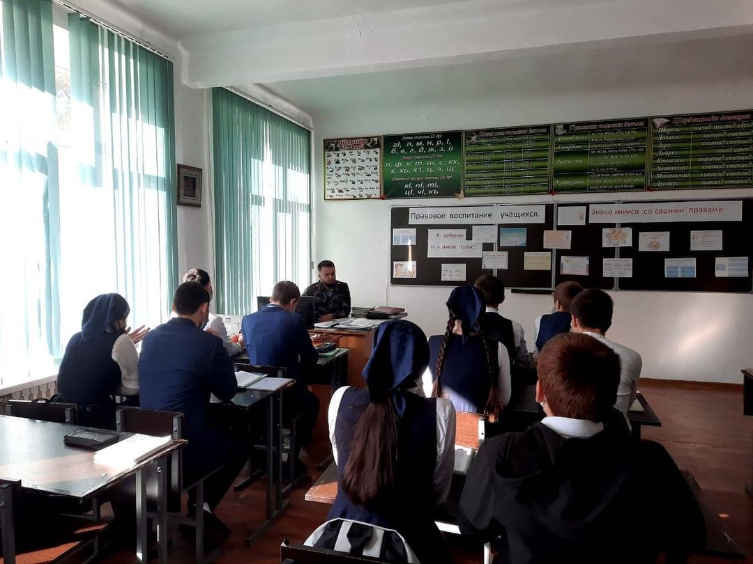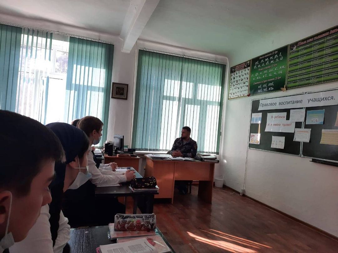 Участковый уполномоченный села Рубежное Давтиев Сайд-Эми провёл беседу по правовой культуре в 10 "а" классе.