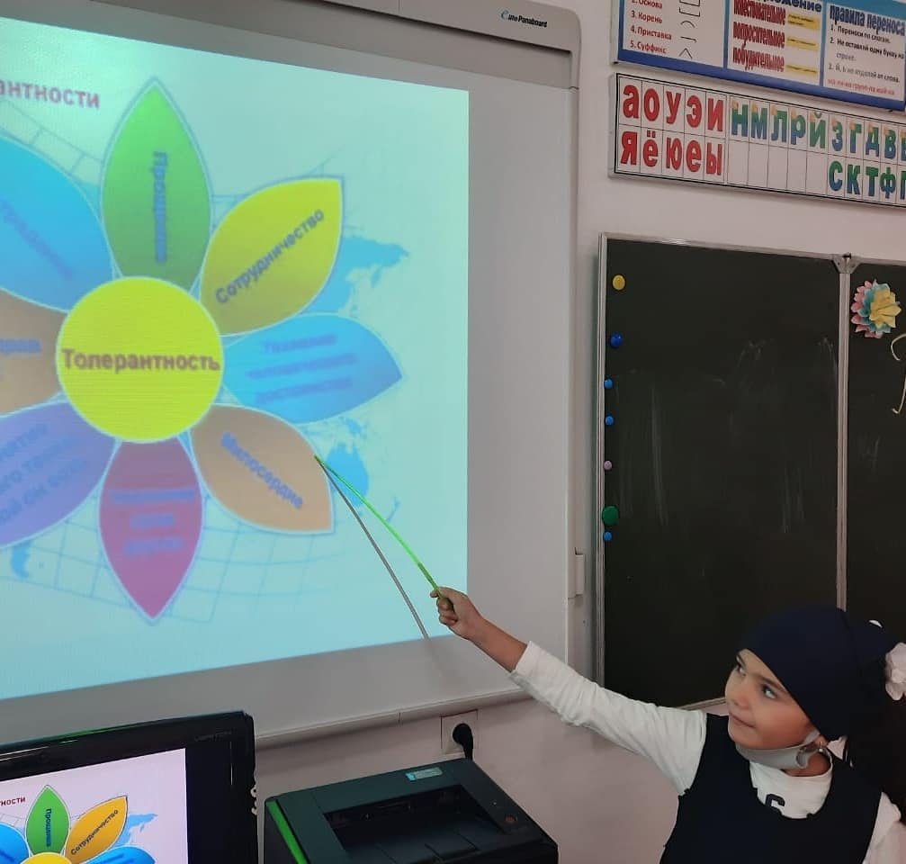 Классный руководитель 1 "Б" класса Исаева З. М. провела открытый классный час по теме: "Толерантность - это гармония в многообразии".