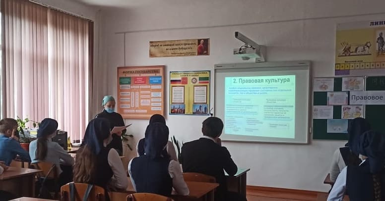 в 10 б классе прошел урок "Права", приуроченный неделе правовой культуры.Классный руководитель: Муридова З.К.