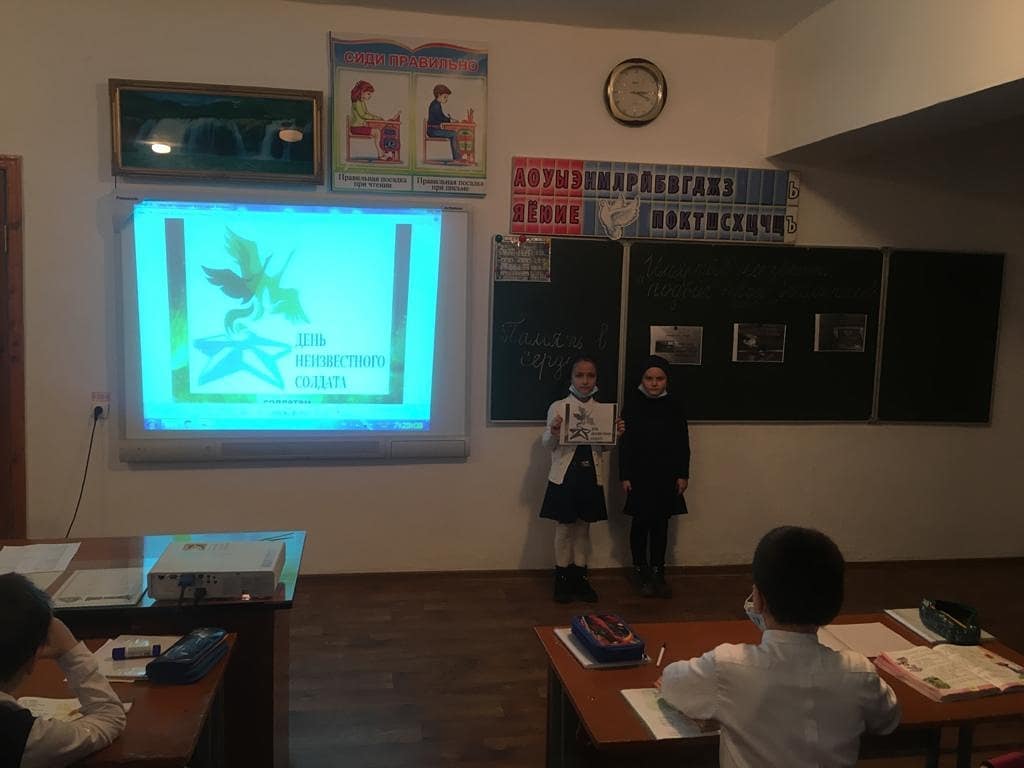 Классный час во 2 а классе по теме: "День неизвестного солдата".Классный руководитель: Зубайраева Л. А..