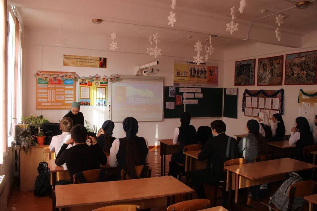 Классный час в 10 "Б" классе.Тема: "День Конституции РФ".Классный руководитель Муридова З.К.