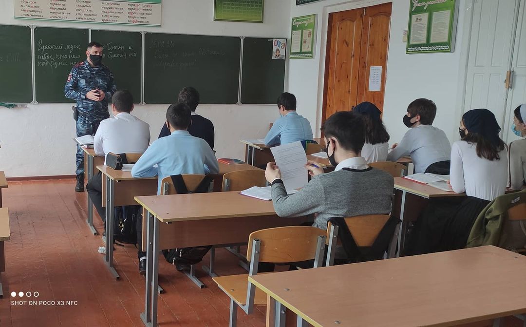 05.02.2021Инспектором ПДН, майором полиции Эжаевым У.В. 05.02.2021 г. проведена беседа с членами отряда ЮДП «Патриот» МБОУ Рубежненская СОШ на темы: «Выход в социальные сети», «Недопустимость нахождения на улице в позднее время суток после 22:00 без сопровождения родителей или законных представителей», «Нарушение школьного устава. Последствия».