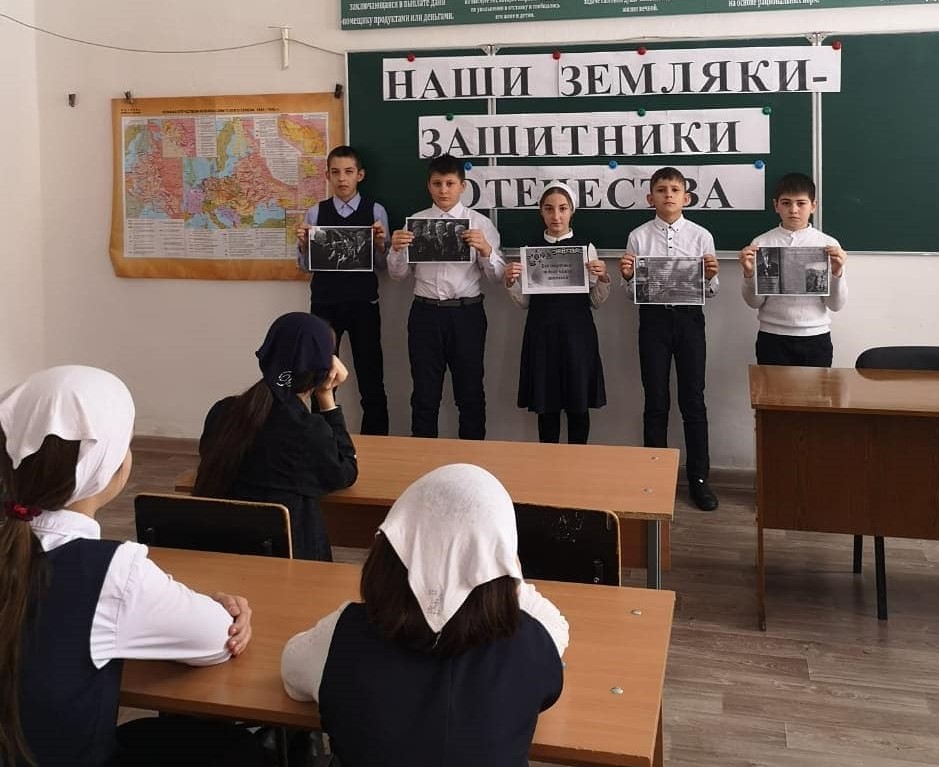Учитель истории Омарова Л.А-Л. провела Урок Мужества в 5 "б" классе ко Дню защитника Отечества.
