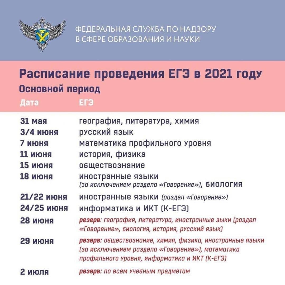 26.04.2021Подготовили инфографику с расписанием ЕГЭ в 2021 году.⠀Экзаменационный период продлится с 31 мая по 17 июля.⠀Напомним, что для получения аттестата о среднем общем образовании выпускникам 11-х классов:⠀✏ не планирующим поступать в