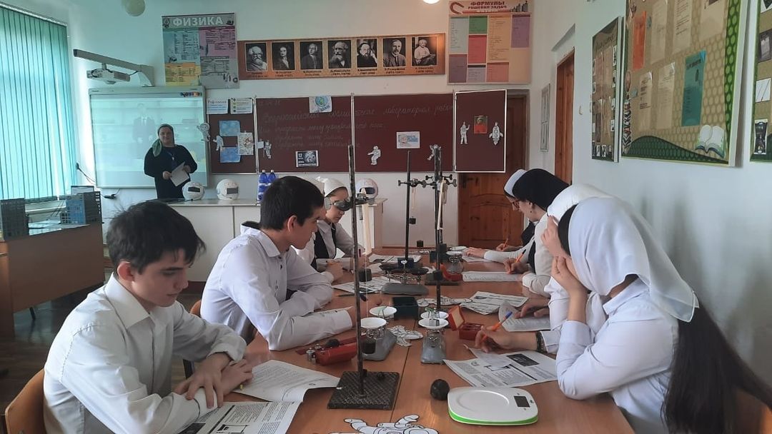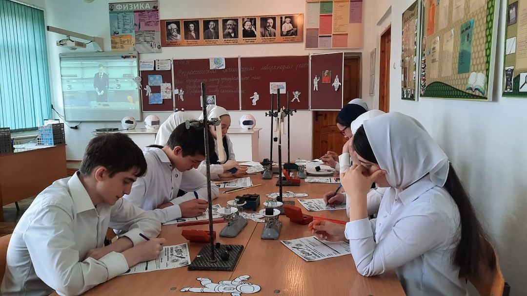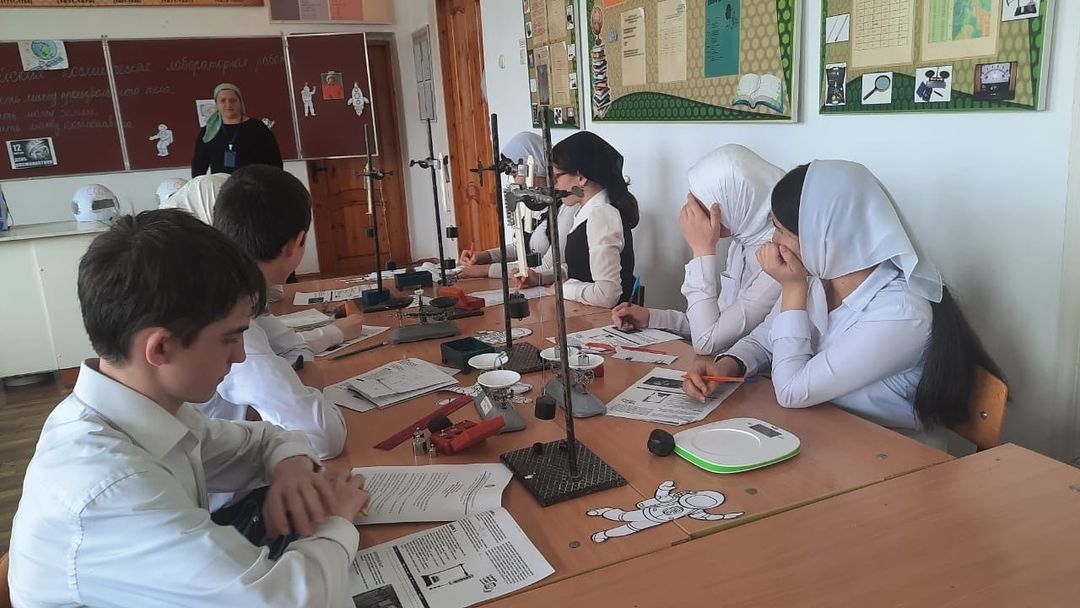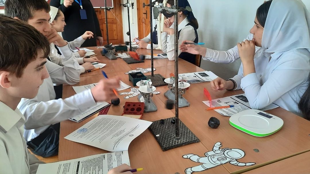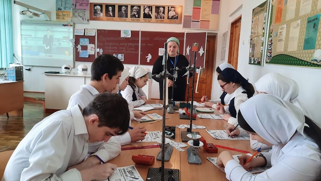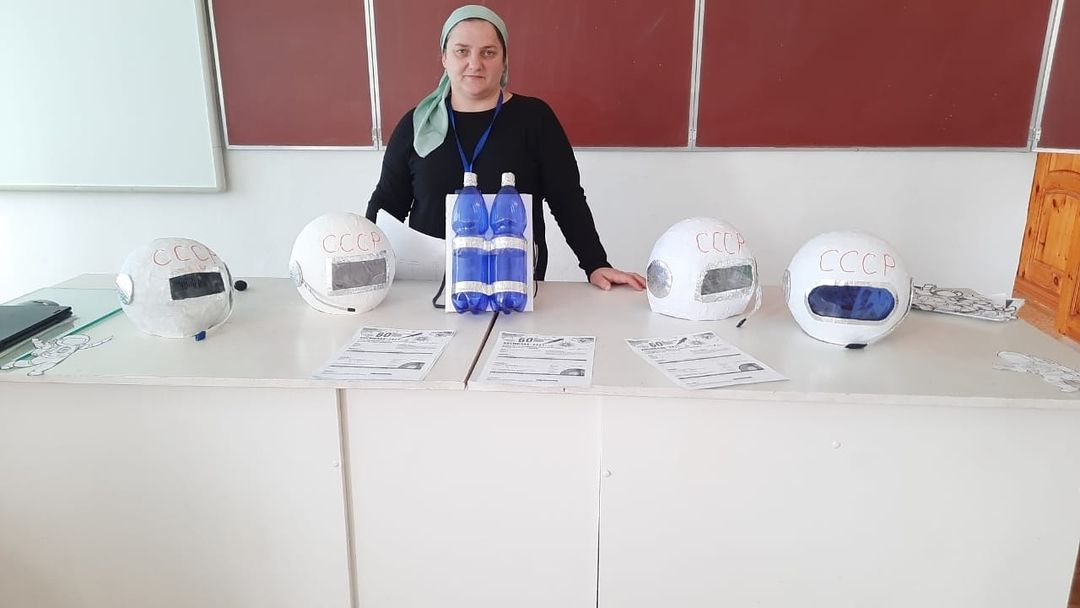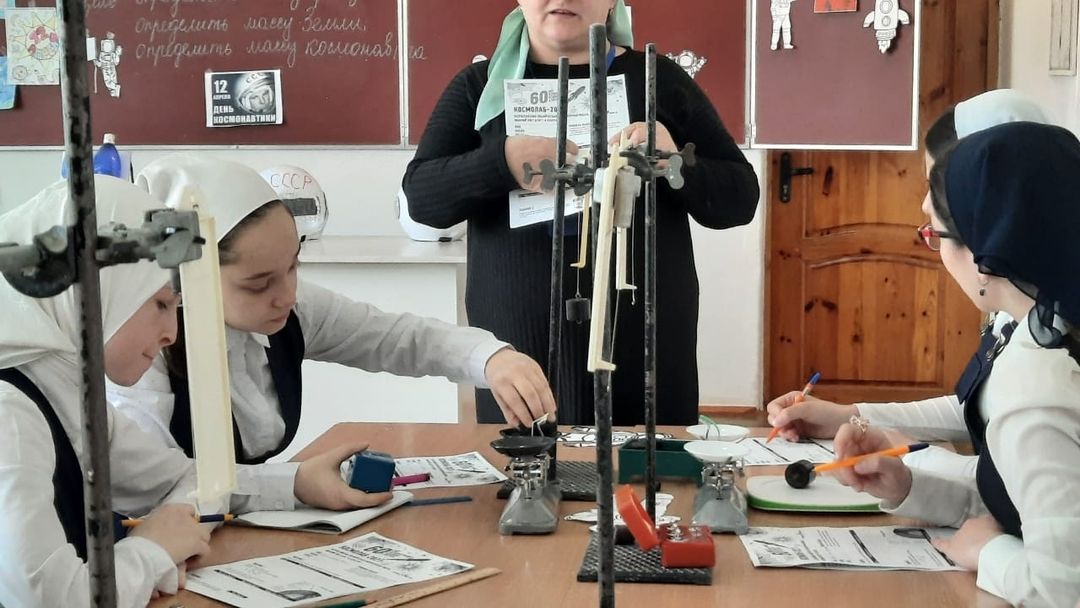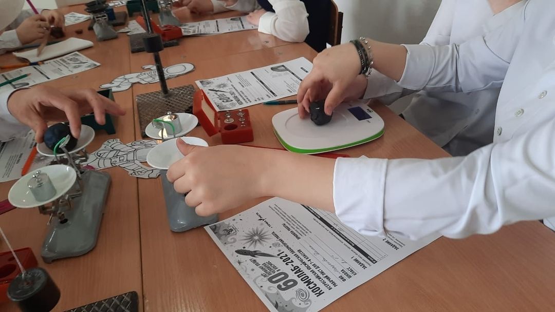К 60-летию первого полета в космос учителем физики Килиевой Х. С. проведена Всероссийская космическая лабораторная работа с учащимися 8 класса по определению массы земли и космонавта.