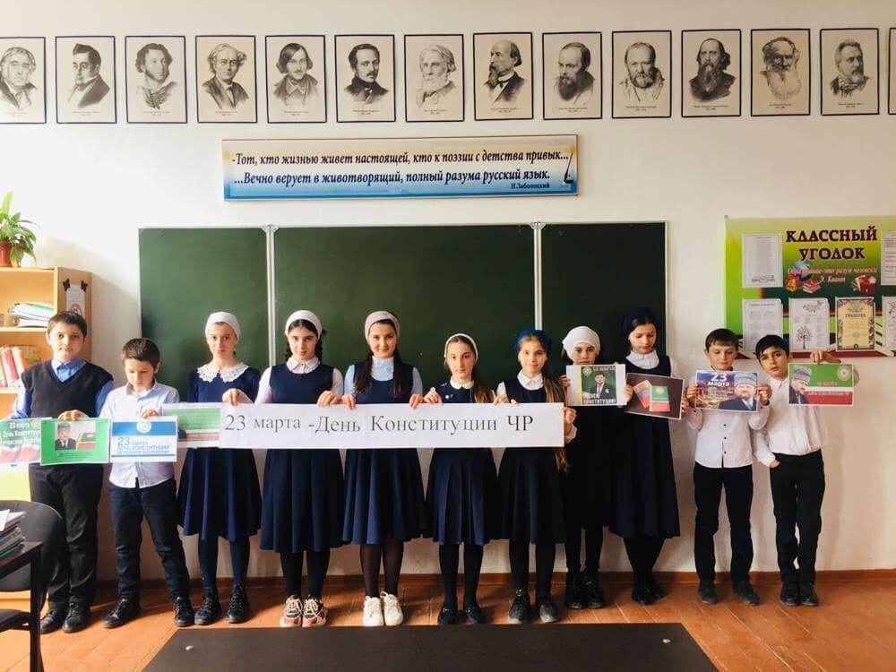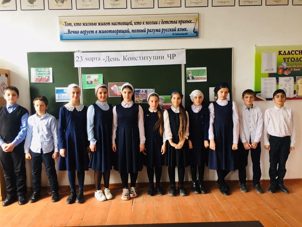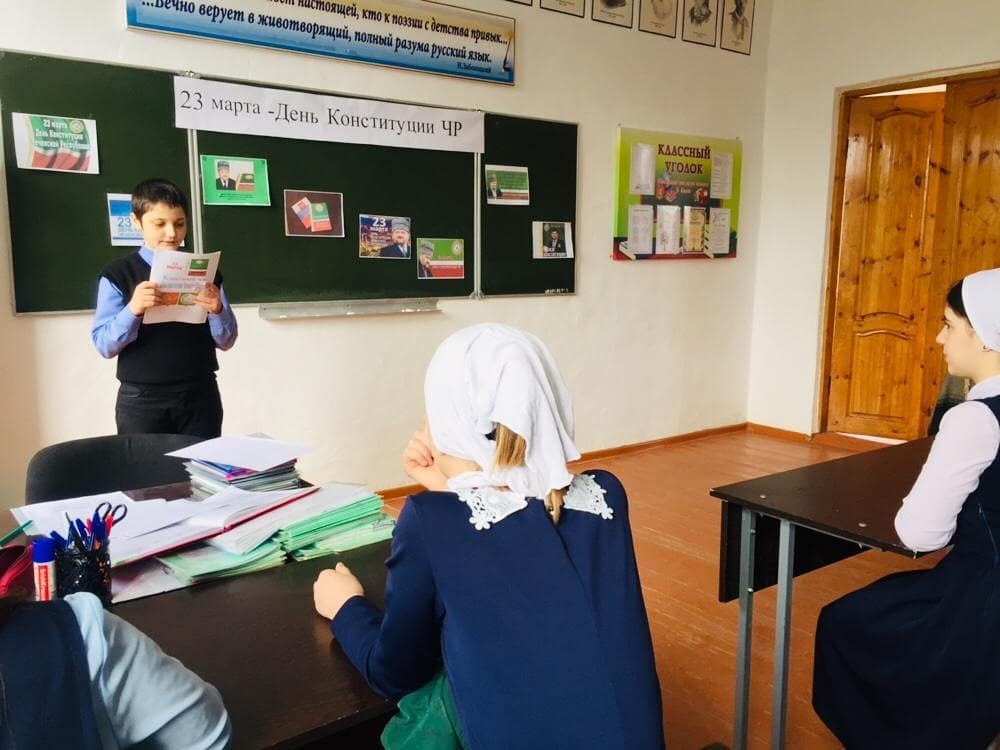 Классный час в 5 б классе, посвященный Дню Конституции Чеченской Республики.Классный руководитель Хасиева Р.С.