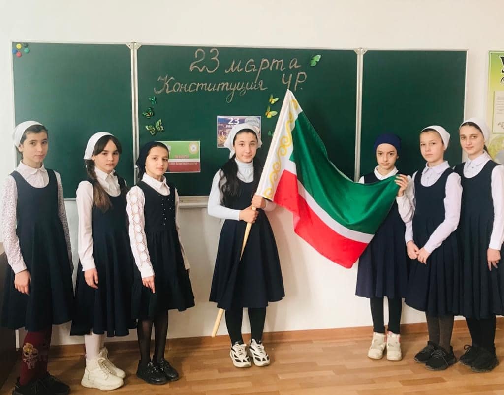 Классный час в 5 а классе ко Дню Конституции ЧР.Классный руководитель Минтуева Д.С.