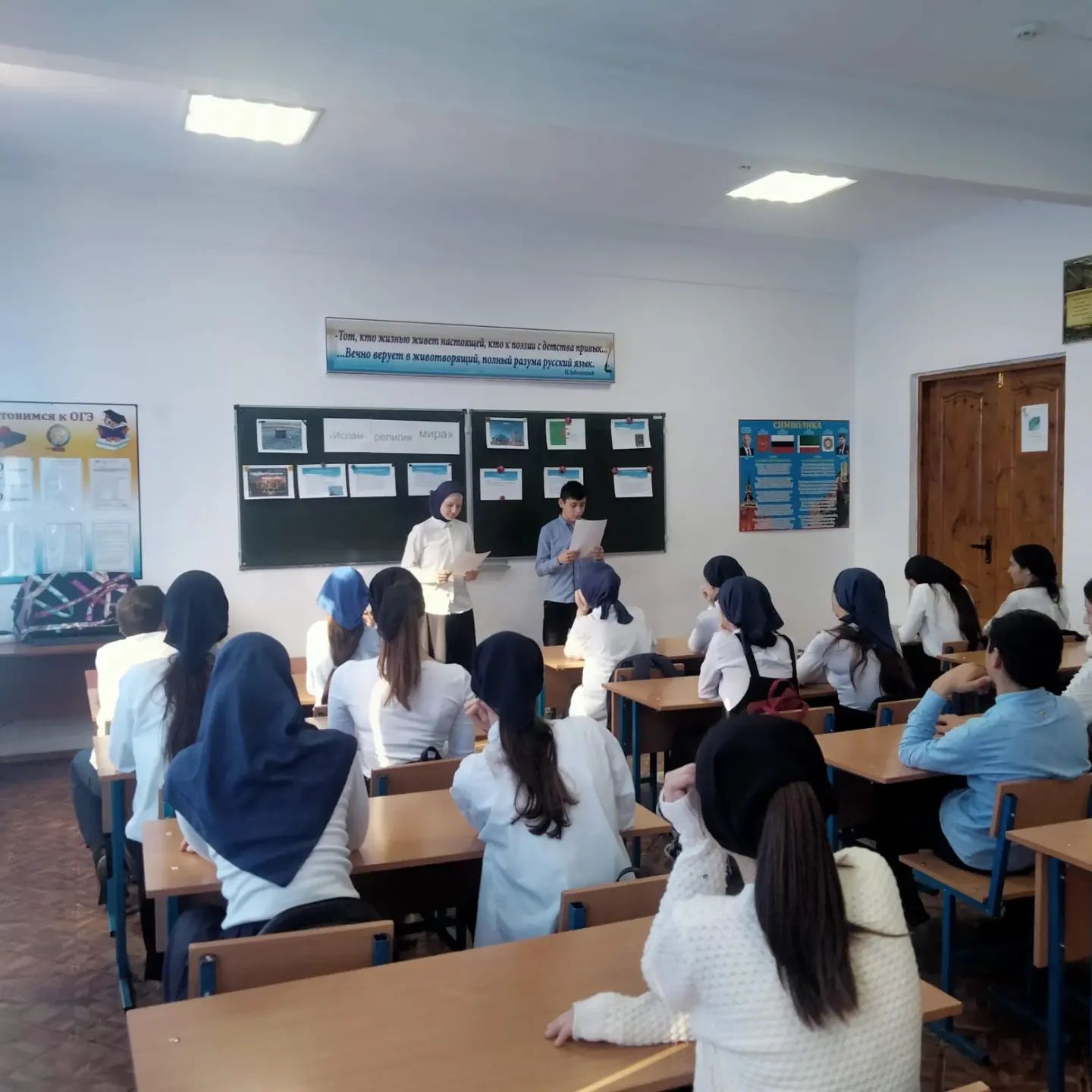 в 8а классе прошел классный час по теме "Ислам религия мира".Классный руководитель Исаева П. Х.