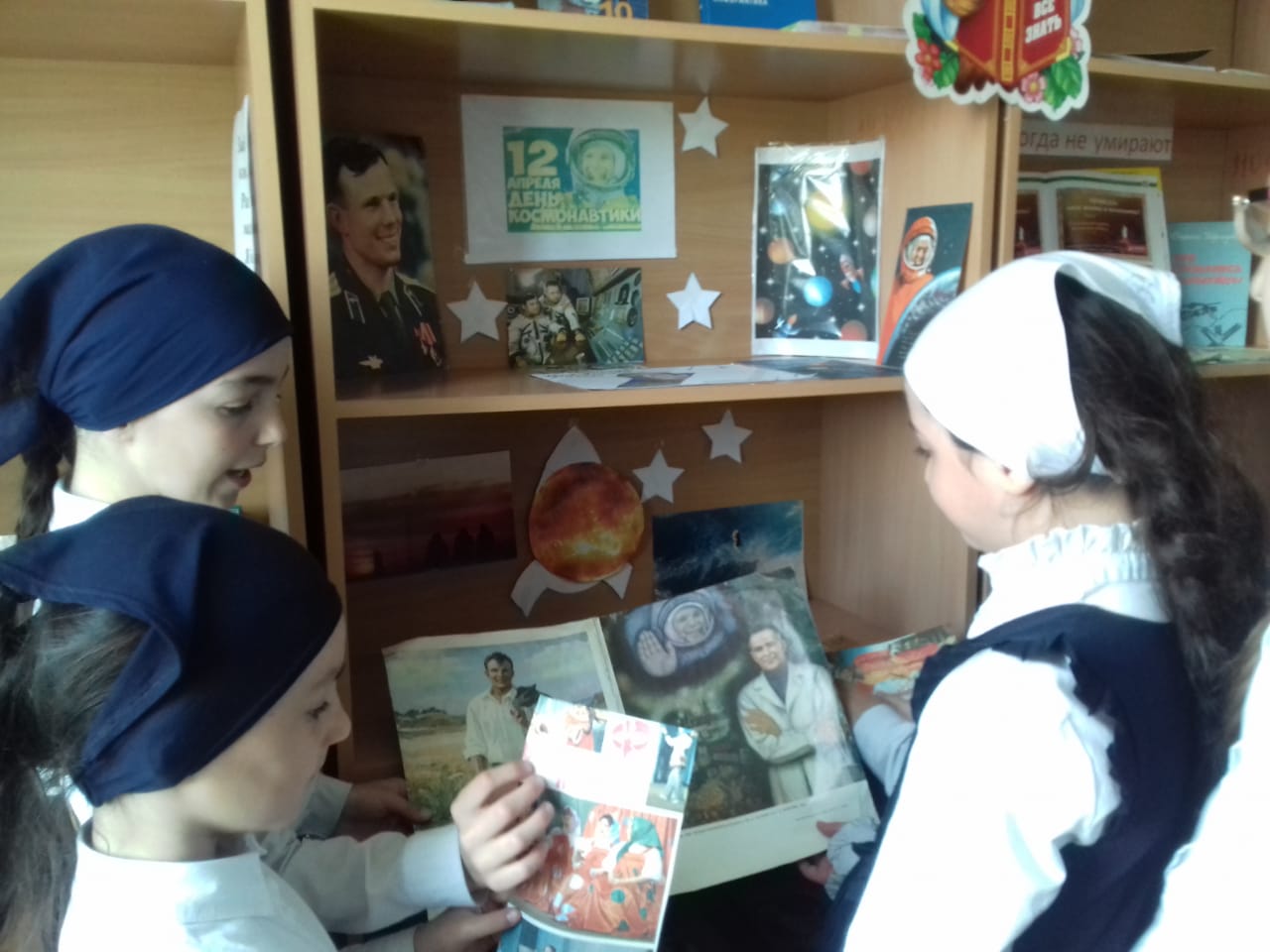Оформлена выставка посвящённая Дню космонавтики "Знаете каким он парнем был..."Провели: мероприятие "Здравствуй небо" и Гагаринский час "Знаете каким он парнем был."