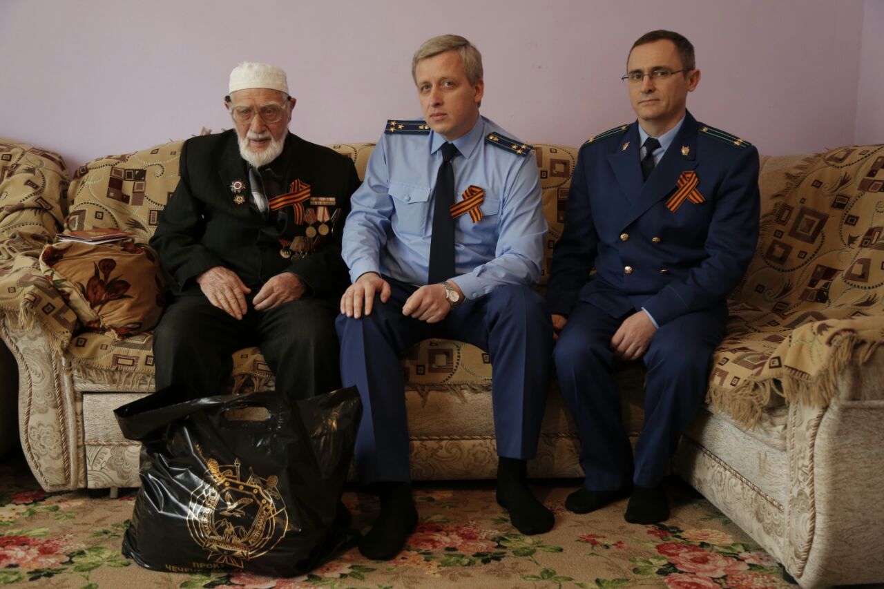 25.04.2017По поручению прокурора республики Шарпудди Абдул-Кадырова прокурором района ИмраномСербиевым и его заместителем Хасаном Магомадовым25апреля текущего года осуществлен выезд по месту жительства ветеранов Великой Отечественной войны Авсара Халилова и Владимира Атарщикова, проживающих в Наурском районе.
