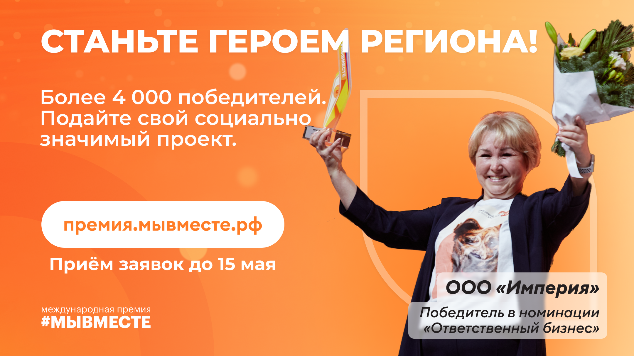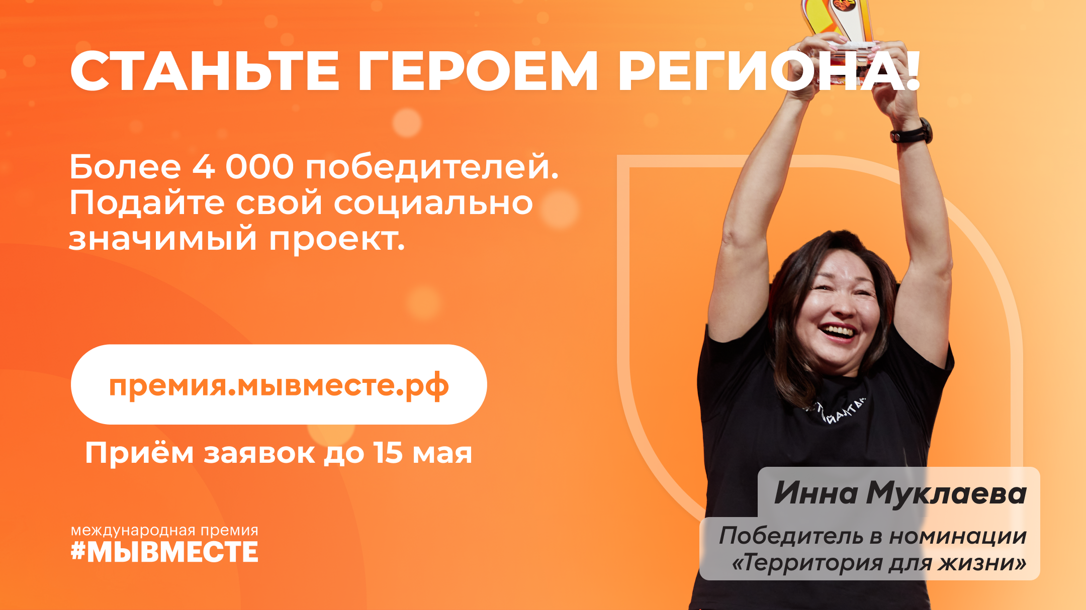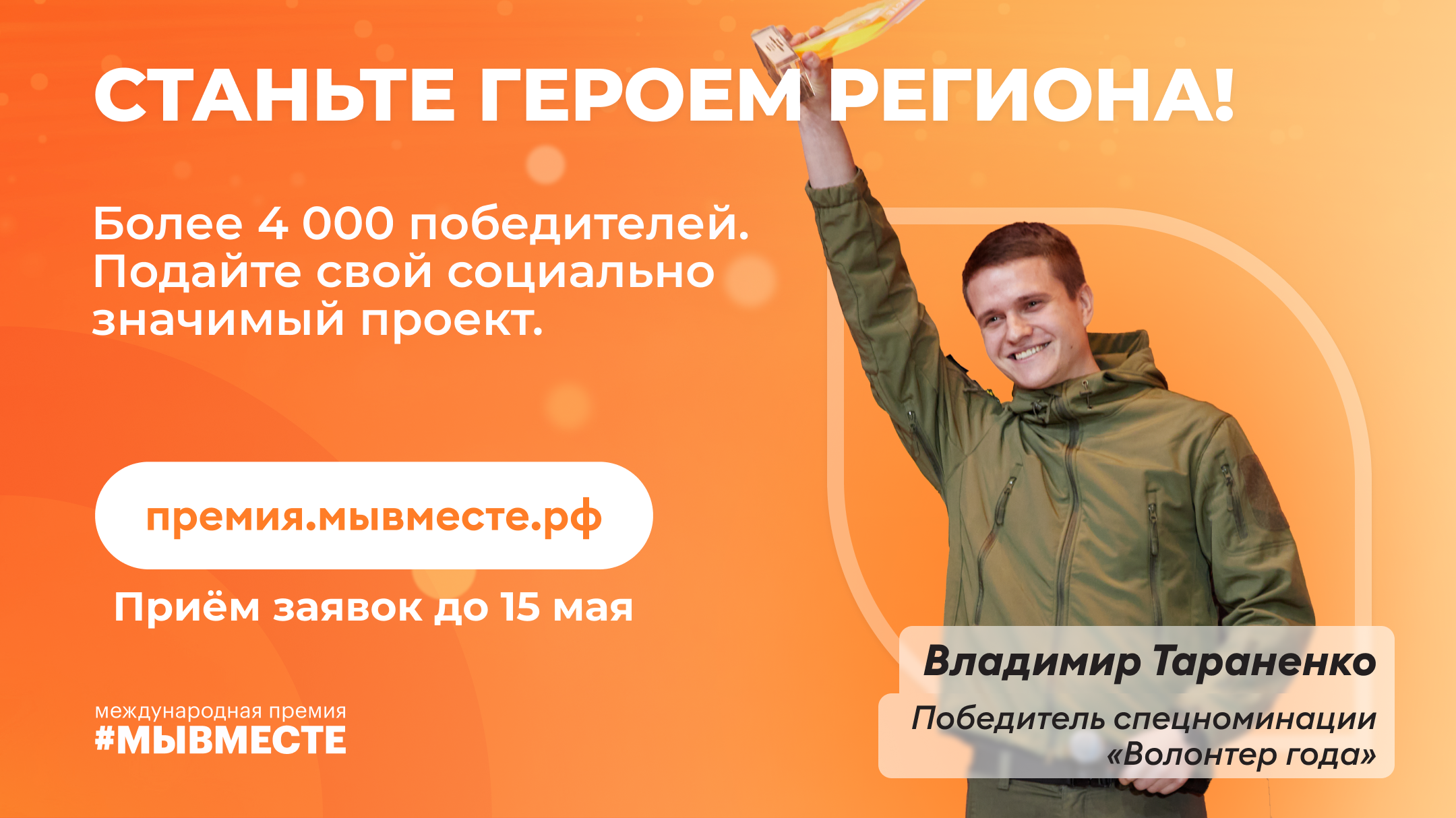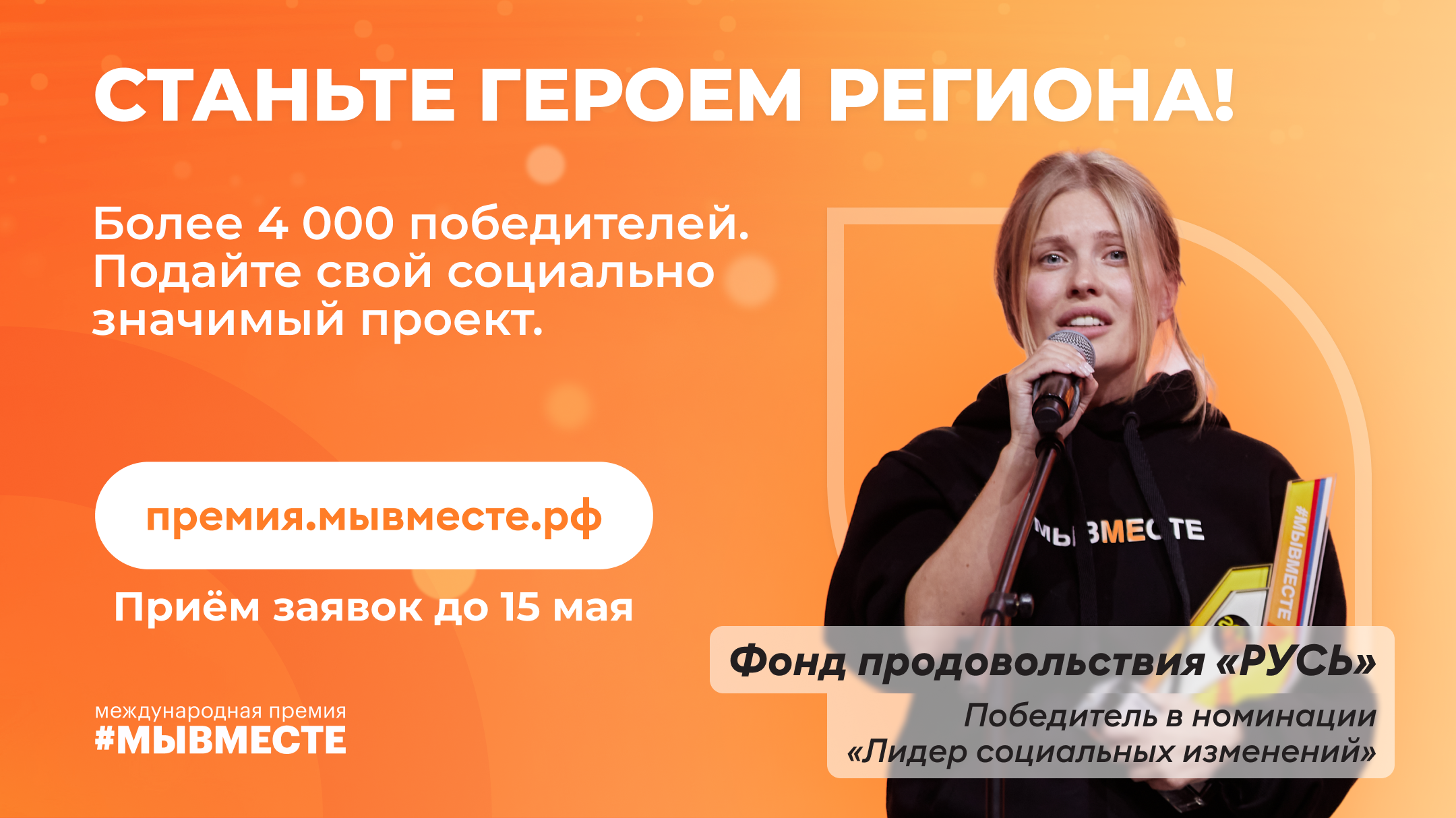 Регистрация проходит на сайте премия.мывместе.рф до 15 мая.