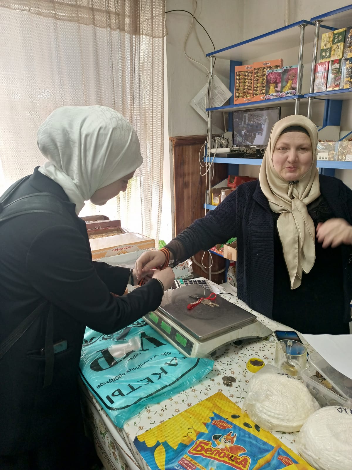 Школьными общественными организациями МБОУ "Рубежненская СОШ", проведена всероссийская акция "Георгиевская ленточка", раздача ленточек жителям с. Рубежное