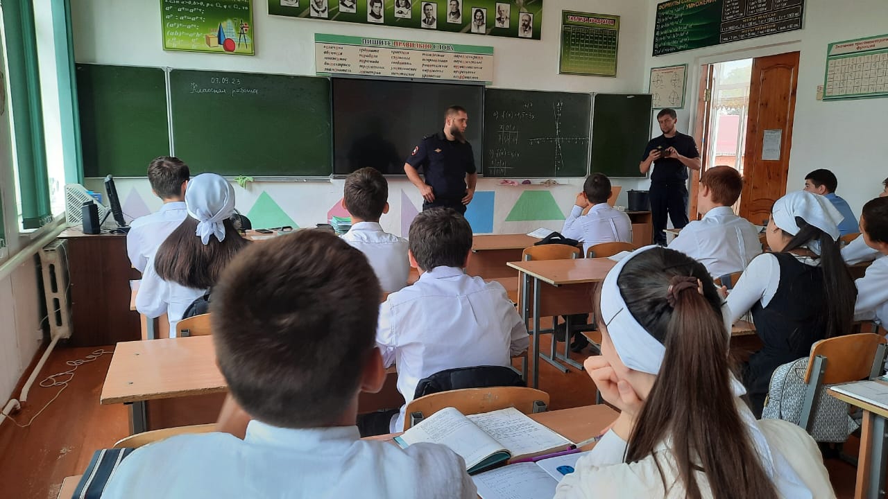 07.09.2023В рамках Всероссийской акции «Внимание - дети!»🚦 7 сентября 2023 г. в МБОУ "Рубежненская СОШ" прошли классные часы, беседы, "Минутки безопасности", инструктажи по ПДД совместно с инспектором по пропаганде БДД ОГИБДД ОМВД России по Наурскому району ЧР, старшим лейтенантом полиции Бетербековым Хамзатом Исаевичем.Главной задачей таких мероприятий является обеспечение безопасности детей на дорогах и предупреждение ДТП с их участием.