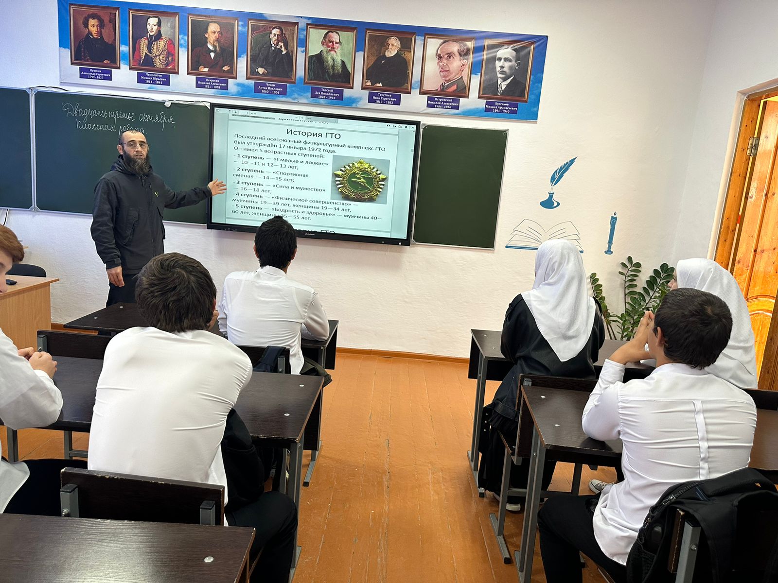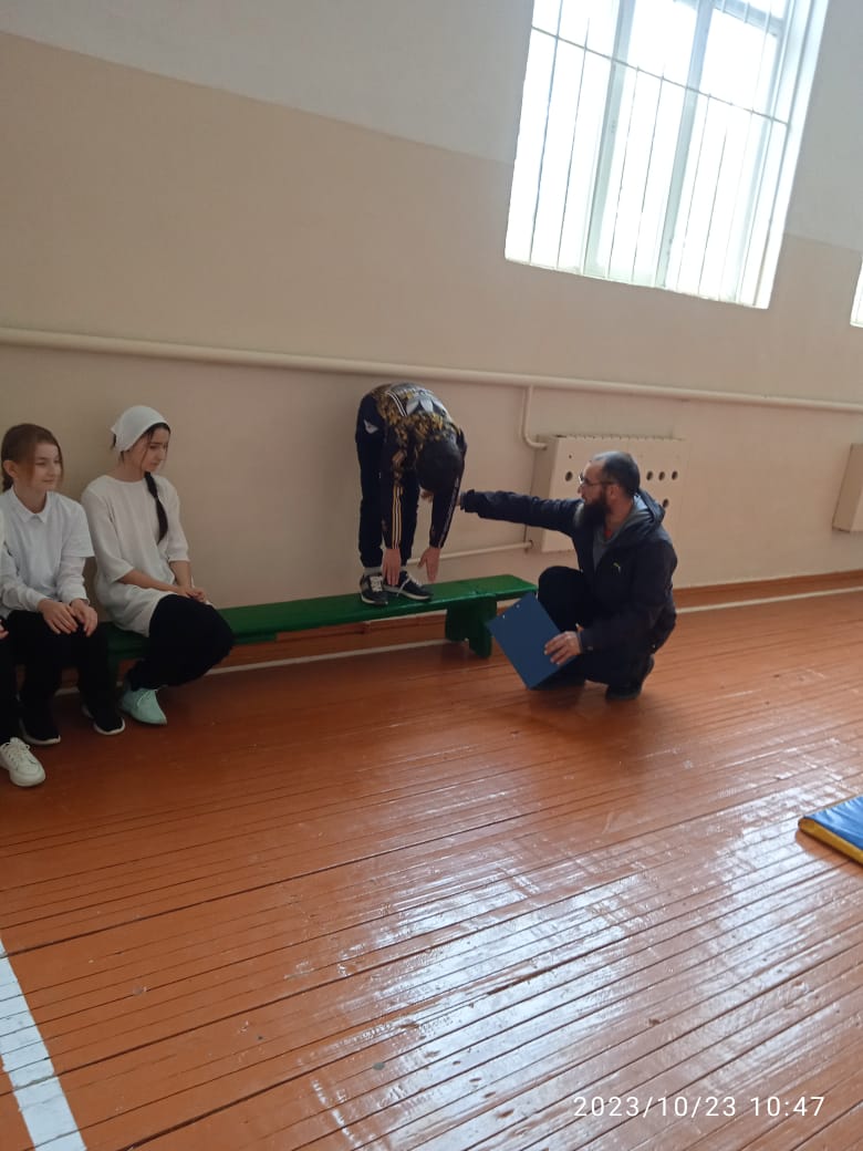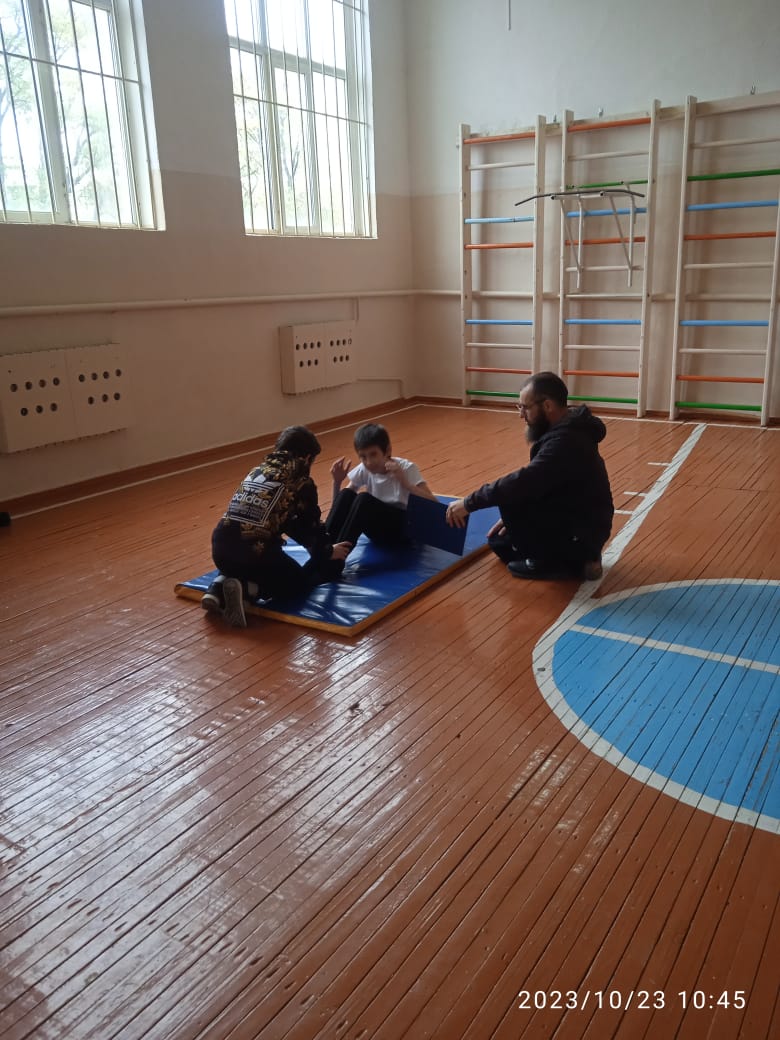 Сегодня,23.10.2023 г,на базе МБОУ « Рубежненская СОШ» прошла Всероссийская акция « Урок ГТО» среди обучающихся 8-9 классов. Учитель по физической культуре Керимов З.З провел беседу по пропаганде здорового образа жизни, познакомил присутствующих учащихся с нормативами и требованиями комплекса ГТО.