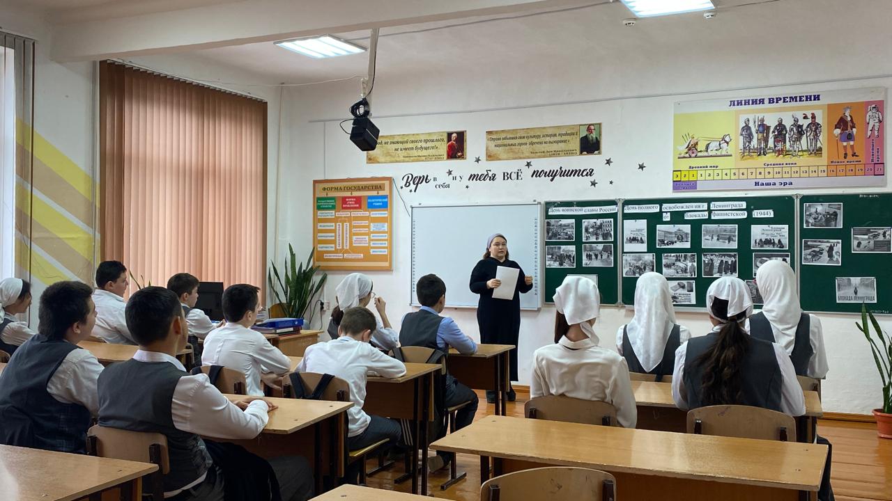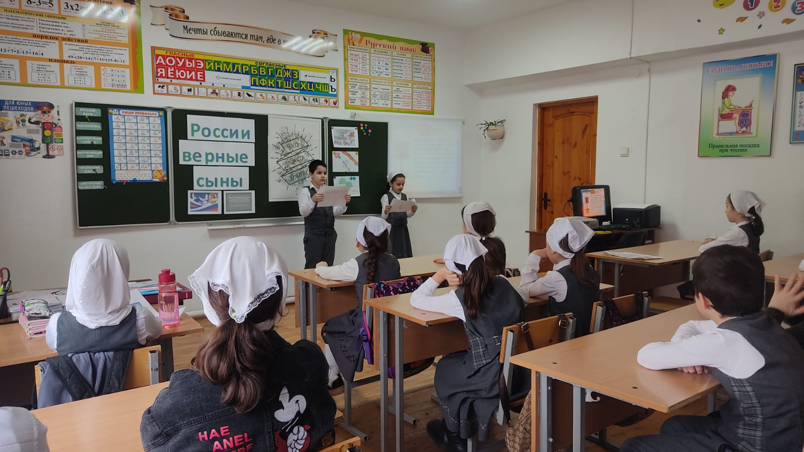 Согласно плану ВР школы в школе проведены следующие меропртятия: уроки-мужества, классные часы, начальные классы организовали выставку рисунков.