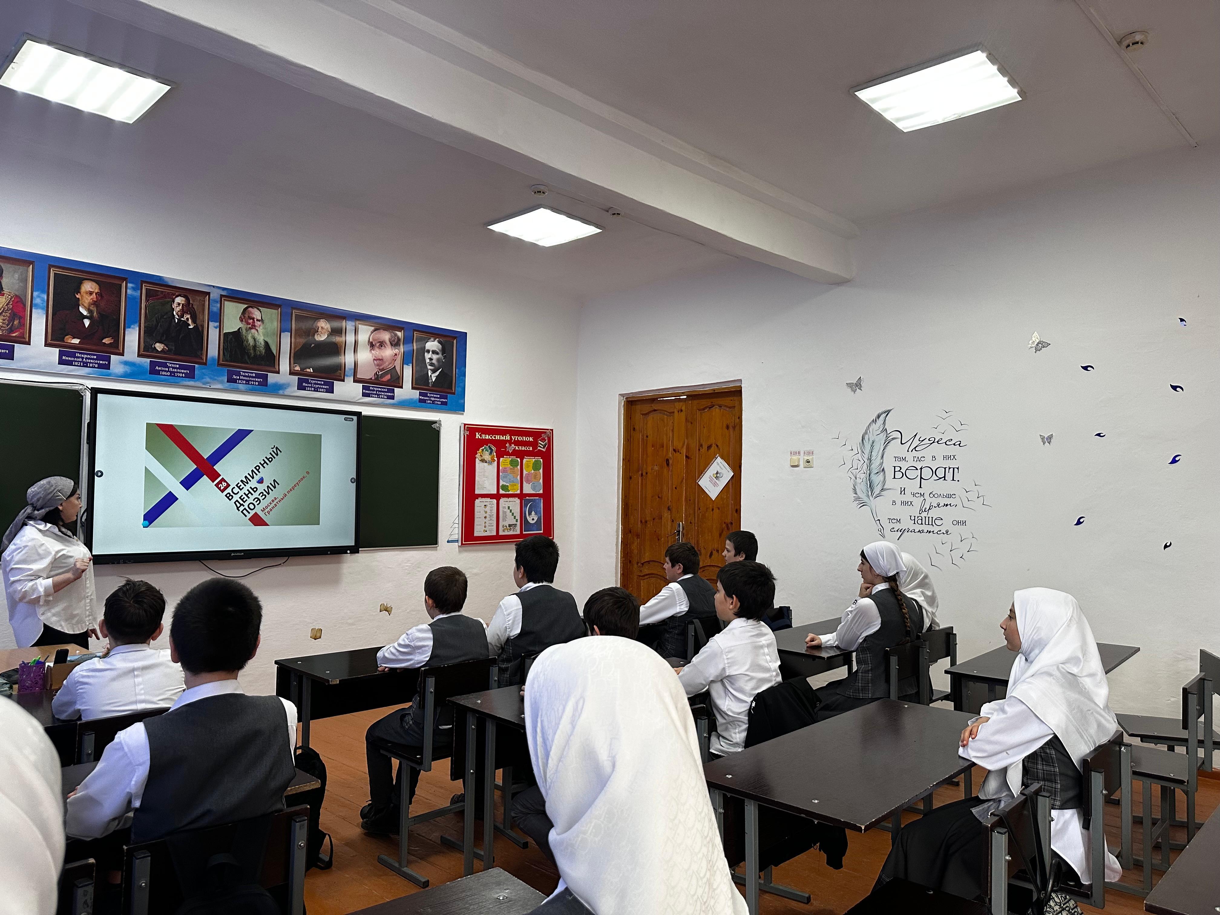 В этот день в МБОУ «Рубежненская СОШ»провели тематические мероприятия: литературная гостиная «Мелодия стихов»,