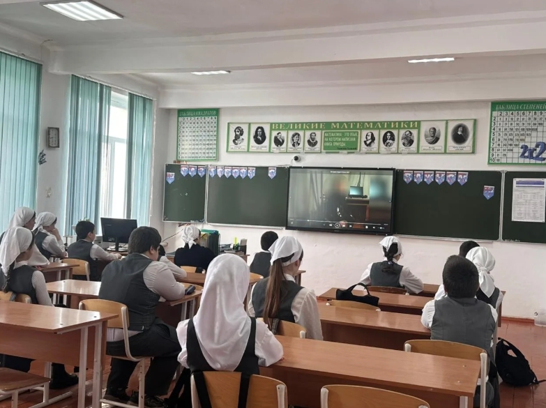 Еженедельная линейка в МБОУ «Рубежненская СОШ». Новая учебная неделя началась с торжественного поднятия флагов РФ и ЧР с исполнением гимнов.